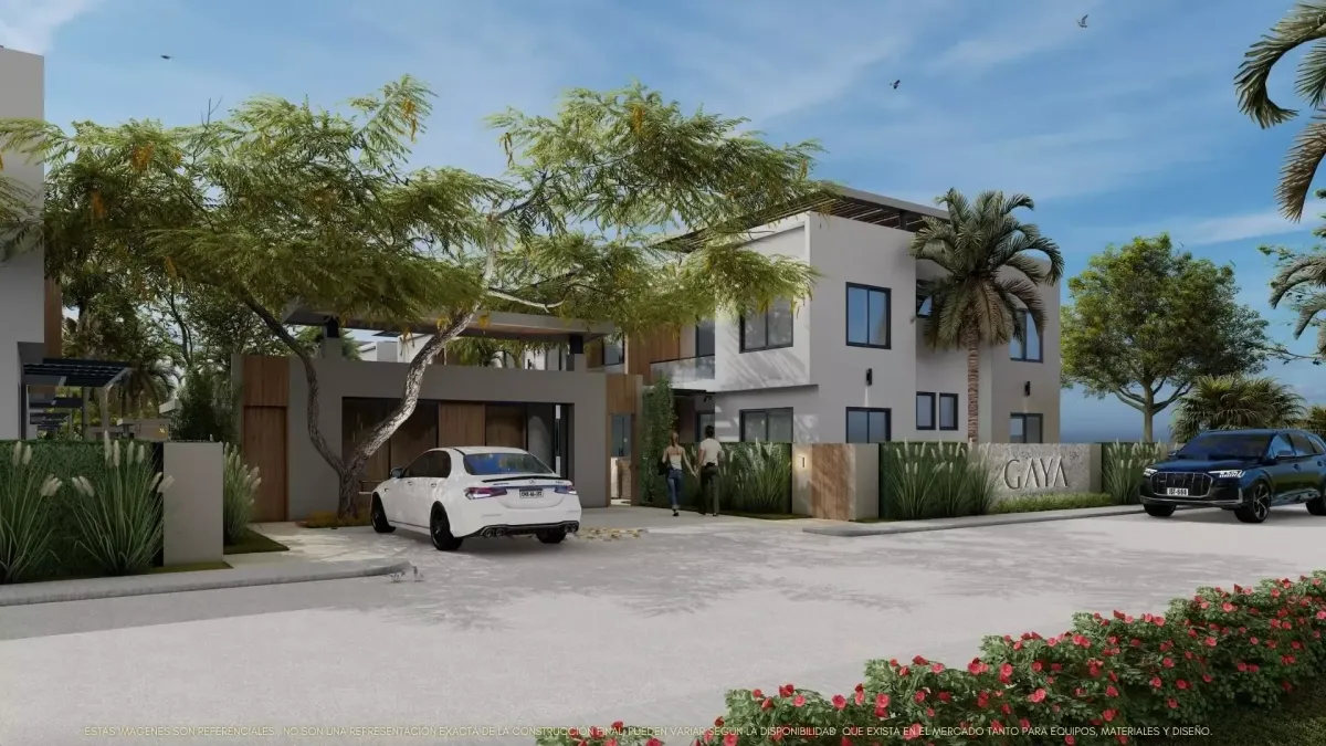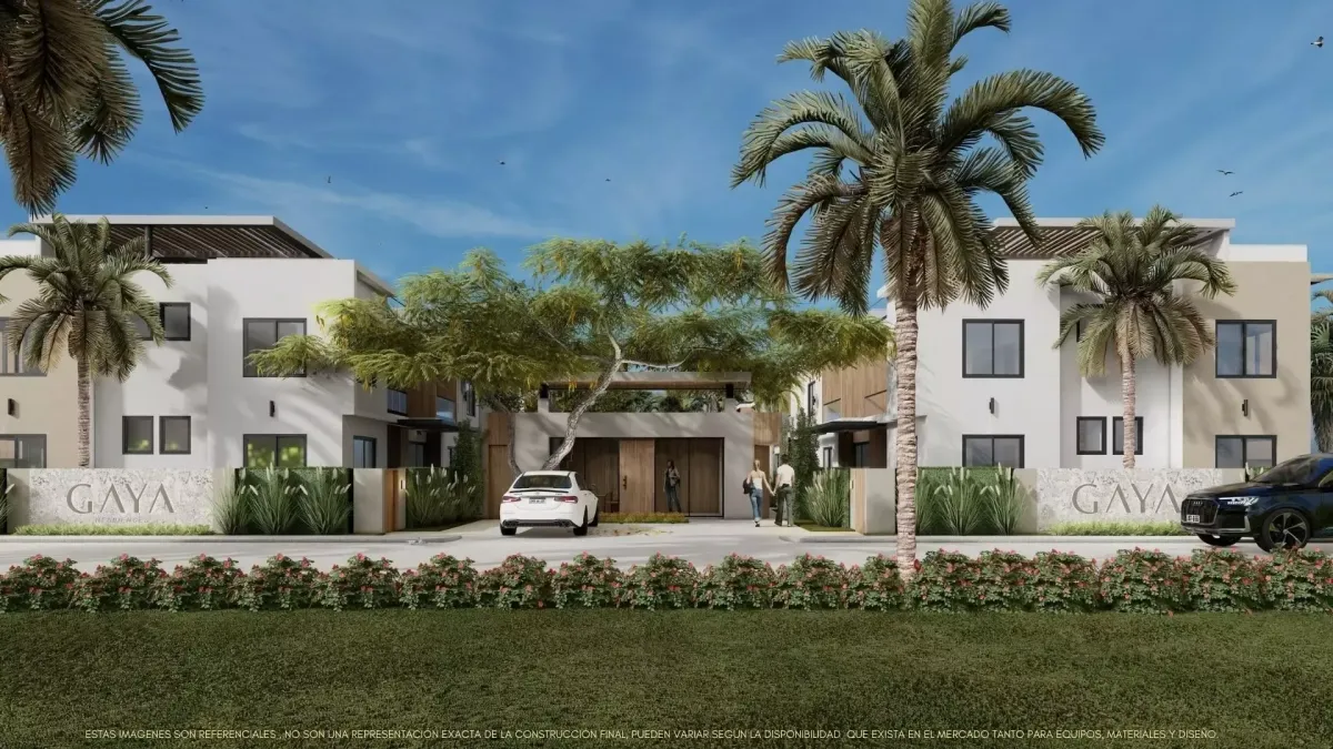 ¡Bienvenido a GAYA, el proyecto de villas que celebra la belleza y la armonía con la naturaleza! La entrada de este magnífico proyecto te invita a sumergirte en un mundo de serenidad y elegancia. Cuenta con hermosos jardines y una cuidada iluminación, la cual brinda una primera impresión impactante.