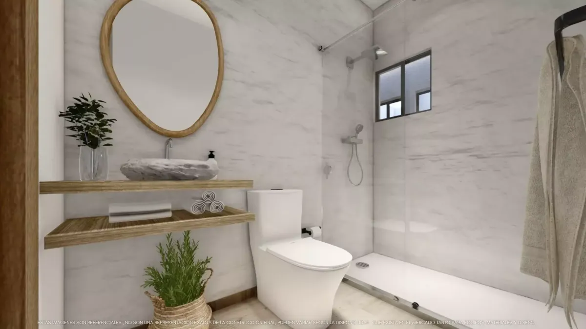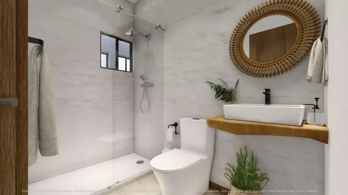 El baño secundario es un espacio funcional y elegante. Con acabados de alta calidad, una ducha moderna y detalles cuidadosamente seleccionados, brinda comodidad y estilo a los residentes y sus invitados.